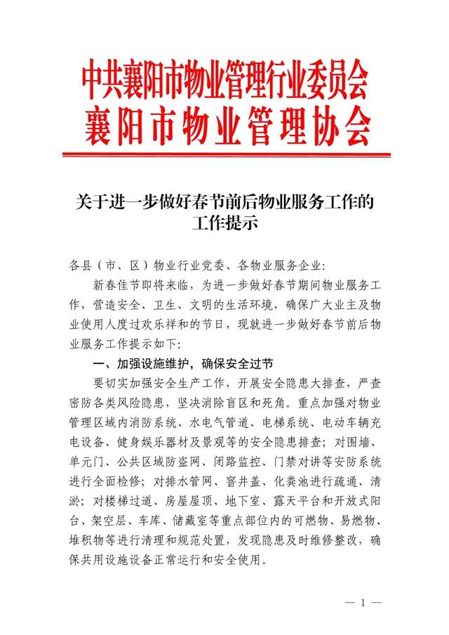 关于进一步做好春节前后物业服务工作的工作提示