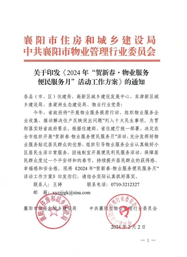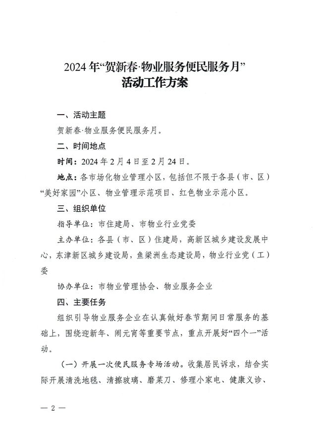 关于印发《2024年“贺新春·物业服务便民服务月”活动工作方案》的通知