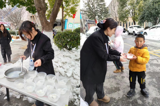 一大早,各工作人员就忙碌了起来,有的挂灯谜,有的烧炉子,有的准备包汤圆、煮汤圆,大家忙的不亦乐乎。铁四院和谐家园项目经理廖峰同志亲自掌勺煮一锅锅热腾腾的汤圆,热情地为来往的居民们送上一碗碗汤圆,将冬日里的温暖送到了每个人的心中。