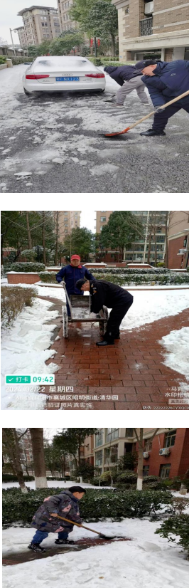 极端寒潮天气给小区物业增加了工作量,他们为了小区的家人们出行方便不辞辛劳,在此次铲冰除雪行动中,汇城物业人快速反应,积极应对,展示汇城物业服务宗旨:“全心全意服务您”;同时业主的主动参与,充分体现了小区物业与业主之间亲密的关系,共建温馨家园。