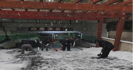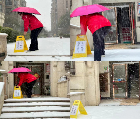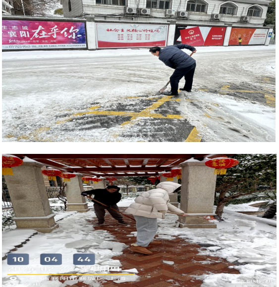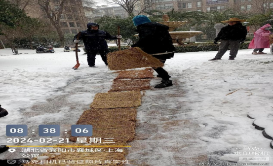 2月20日襄阳市夜间下冻雪,雪深达到10厘米左右,21号早上业主出行受到严重影响,汇城物业服务的小区提前做好了防滑物资的储备应对,在夜间下雪时,由值班人员第一时间撒了融雪剂,因下雪量大,上班行程也受影响,一早物业负责人就提醒员工提前到岗,组织员工进行除雪工作,为业主出行做好准备。