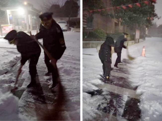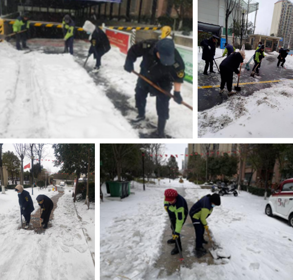 2月20日夜间,一场如约而至的冻雨+暴雪席卷了襄阳这座城市,气温低至零下4度,寒风凛凛,小区内外银装素裹,道路被厚厚的积雪掩盖。如同童话世界一般美丽,然而美丽的背后也隐藏着出行的隐患,为了确保业主们的出行安全,湖北嘉和兴物业全体员工早早到岗,为小区早高峰扫出一条安全的“出行路”。