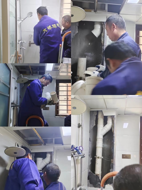 这个时候已临近中午,为了尽快帮业主解决渗水问题,徐班长放弃了吃饭休息时间,争分夺秒地和工程班组的同事们开始了切管换管工作。卫生间管道流下来的脏污物刺鼻难闻,但徐班长和同事们不怕脏不怕难,经过4个小时的努力,终于将管道维修完毕,解决了业主家的渗水问题。