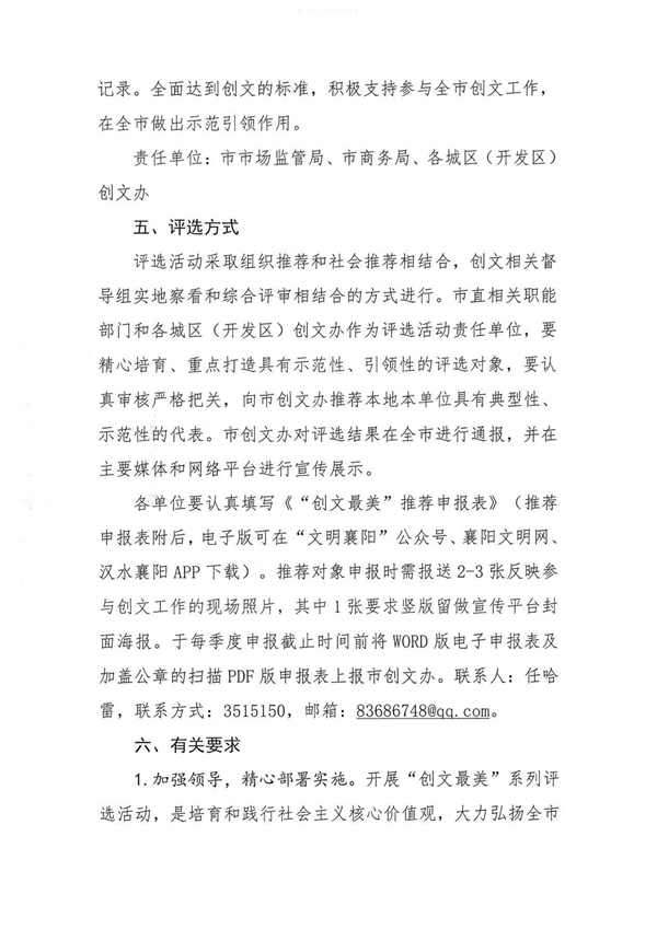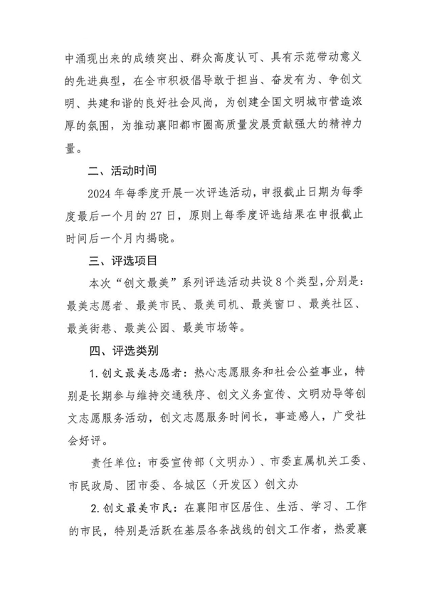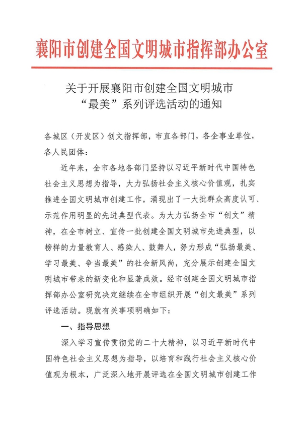 关于开展襄阳市创建全国文明城市“最美”系列评选活动的通知
