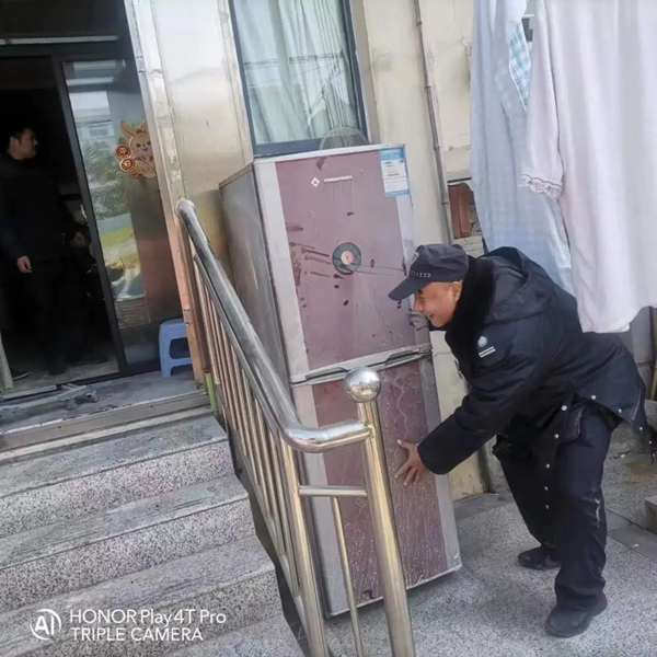 待浓烟散尽,万波和杨队长检查了故障冰箱,在确认无复燃可能后,安排队员帮业主将故障冰箱抬出门外。