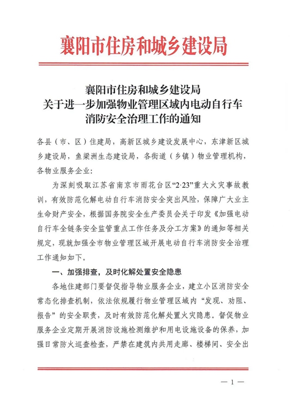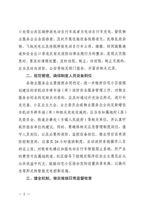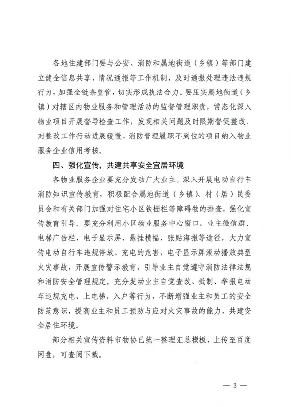 关于进一步加强物业管理区域内电动自行车消防安全治理工作的通知