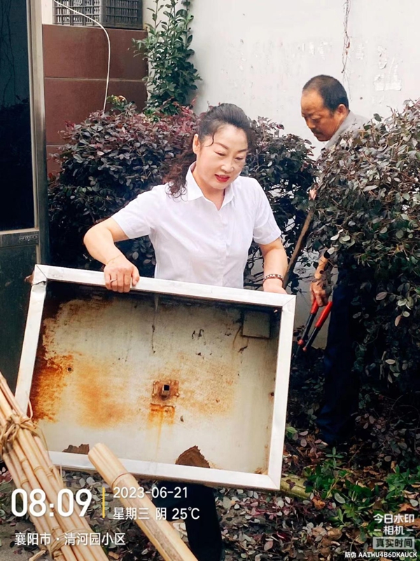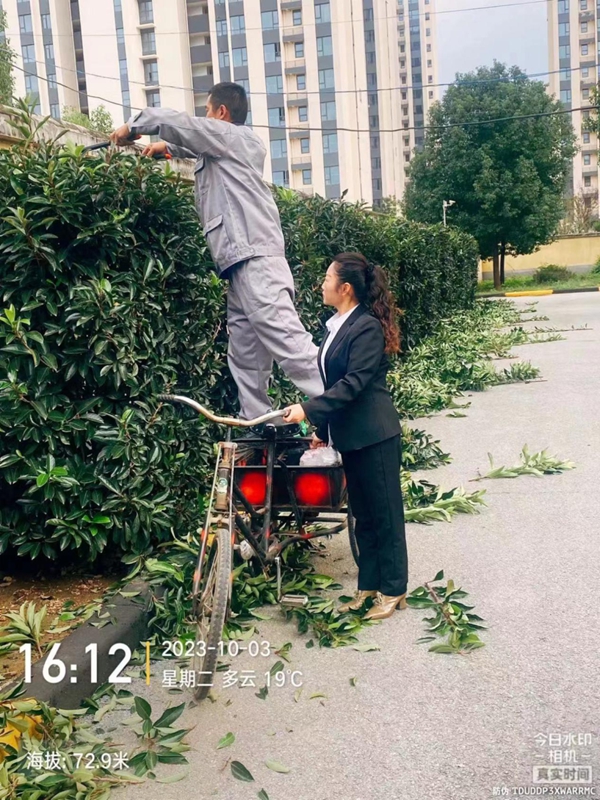 王玲用坚定毅力组织同事们并肩作战,春夏秋冬,不畏严寒酷暑,使两个小区旧貌换新颜。