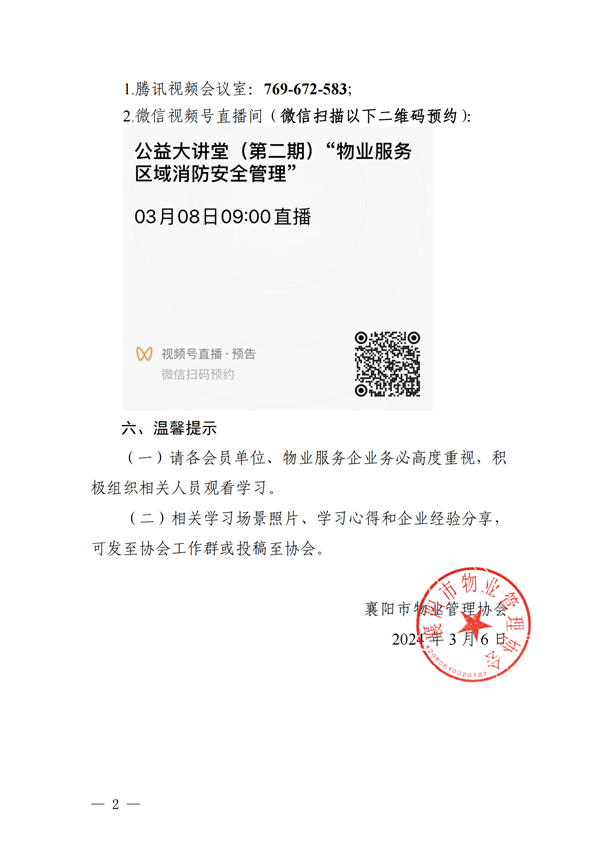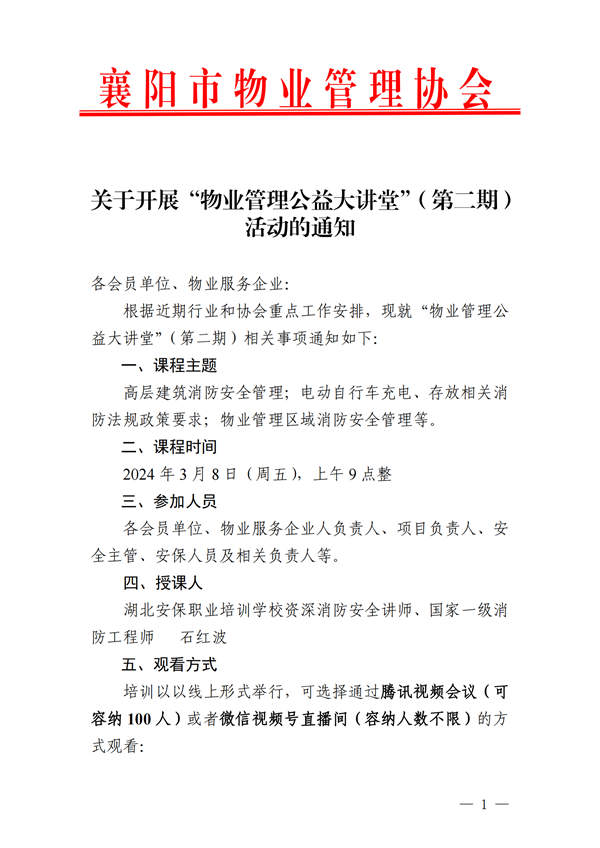 关于开展“物业管理公益大讲堂”(第二期)活动的通知