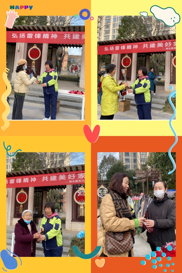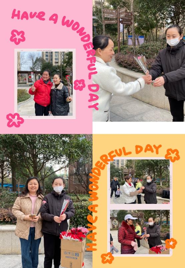 阳春三月,芳华绽放。又到一年一度三八妇女节,为营造浓厚的节日氛围,充分展现女性青春亮丽、积极向上的蓬勃姿态,3月8日上午,湖北嘉和兴物业山水天成小区开展了“鲜花送女神,弘扬雷锋精神,共建美好家园”主题活动,让小区女业主们度过一个愉快、有意义的节日,用实际行动为庆祝这个美好的节日。