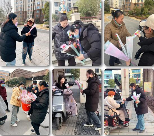 早上还未到8点,物业工作人员便早早上岗,提前来到各小区门口,化身“送花使者”,给女性业主们献上鲜花和节日问候,娇艳欲滴的鲜花和人们的笑脸交相辉映,烘托出温馨祥和的节日氛围。
