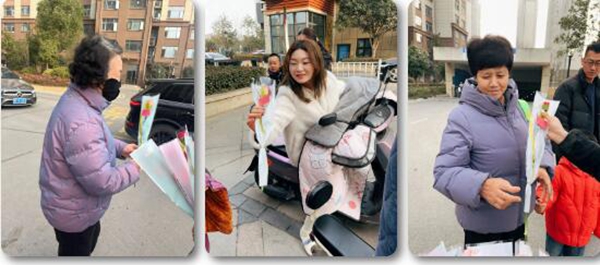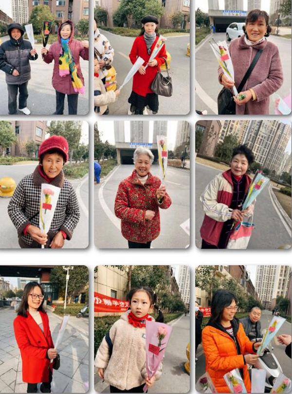 小区洋溢着浓浓的节日气氛,收到鲜花的业主,倍感惊喜,连声道谢,幸福的笑意,从弯弯的眼眸中流淌出来。