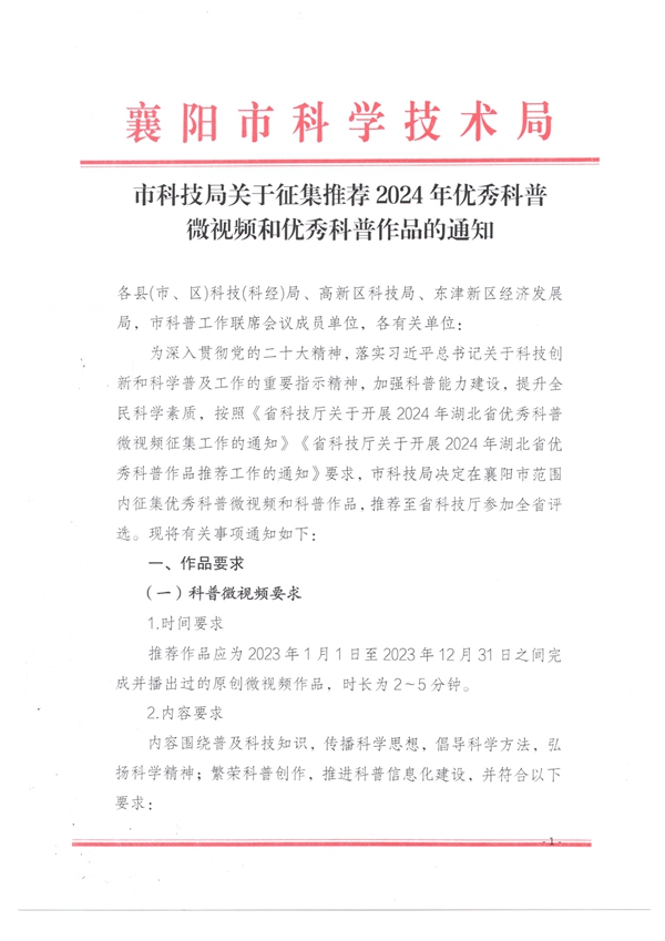 关于征集推荐2024年优秀科普微视频和优秀科普作品的通知