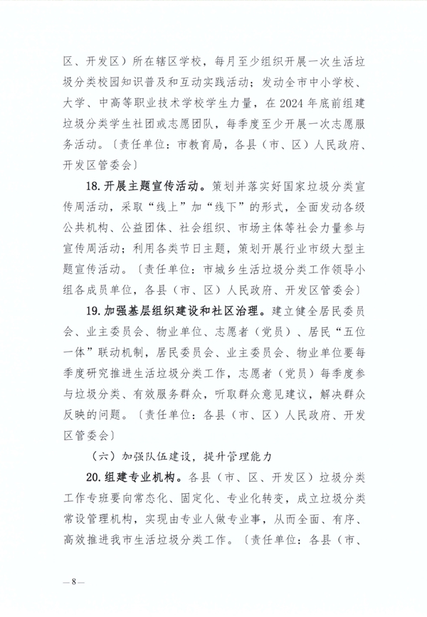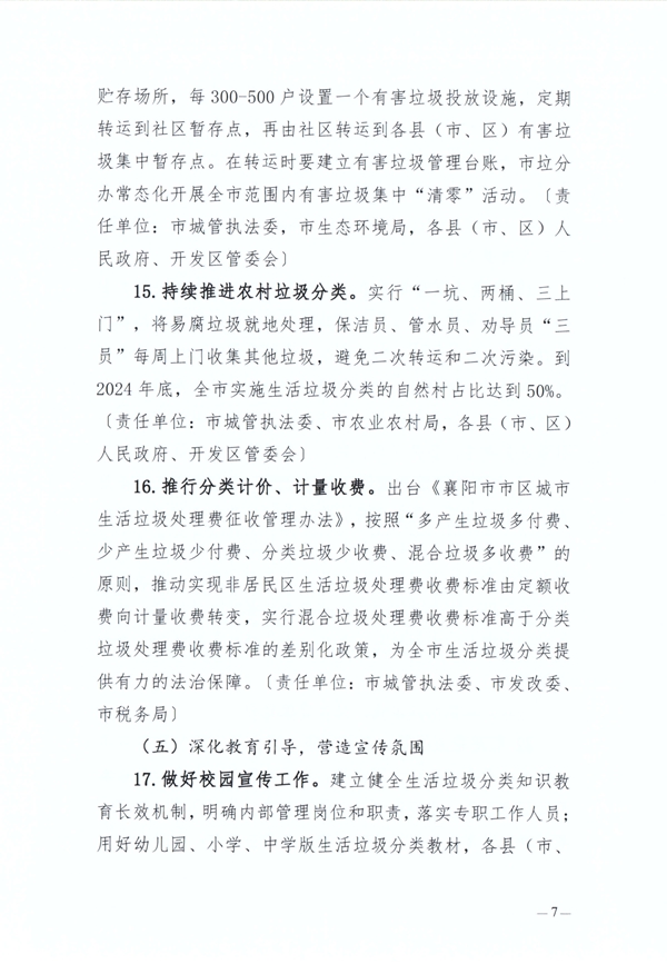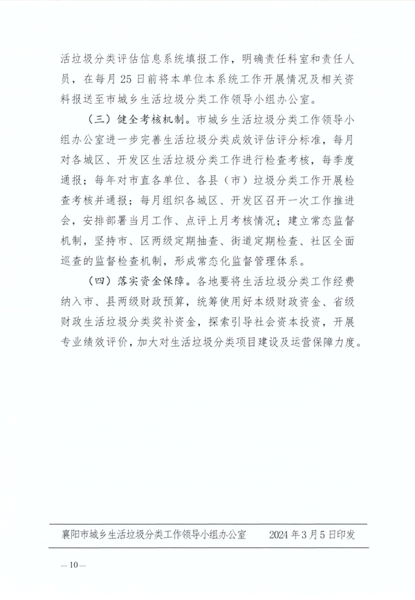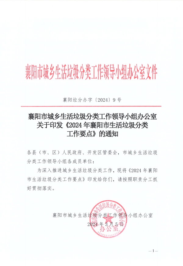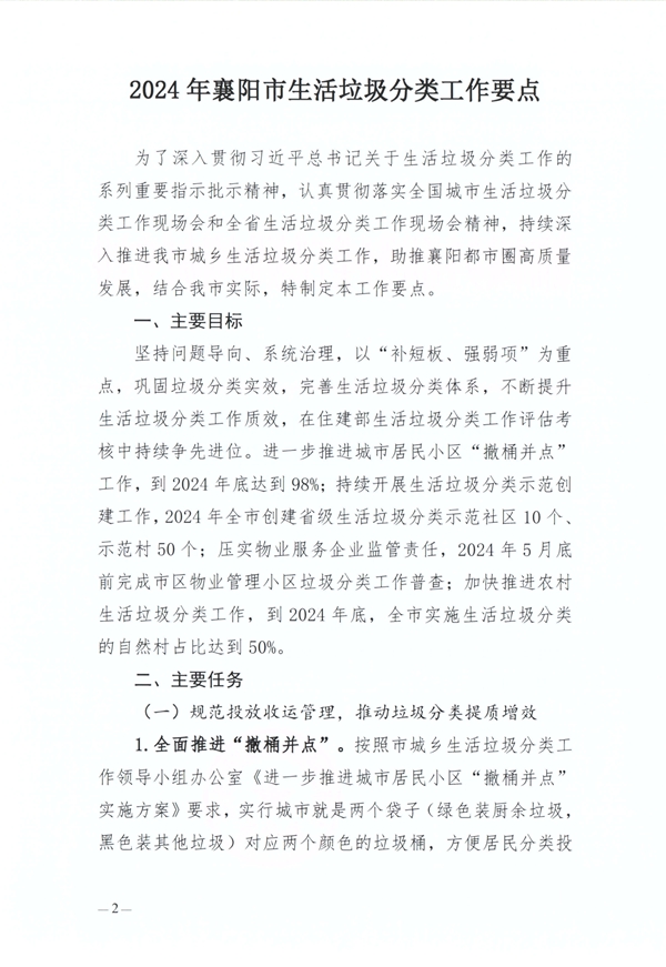 关于印发《2024年襄阳市生活垃圾分类工作要点》的通知