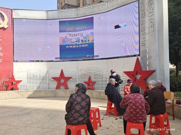 活动现场,福禔物业工作人员早早布置好场地,摆放好座椅。活动还未开始,便有许多老年人提前排队等候,按照顺序发号依次剪发。因为剪发人数较多,在等待的过程中,物业工作人员将广场大屏幕打开,放映消防警示片,宣传消防安全知识,让大家在等待的过程中学习到了基本的消防常识。