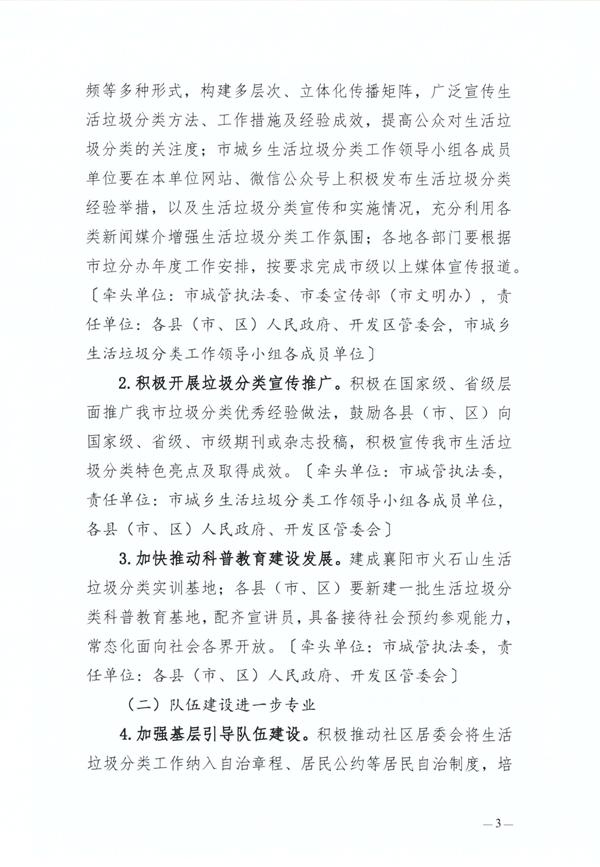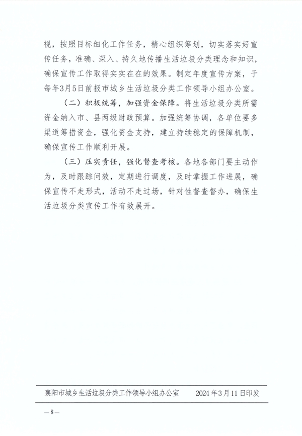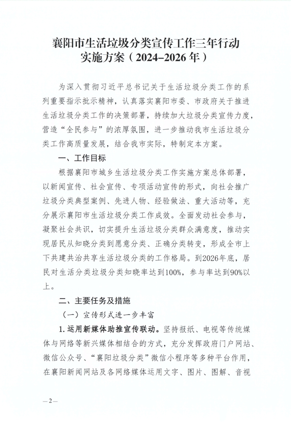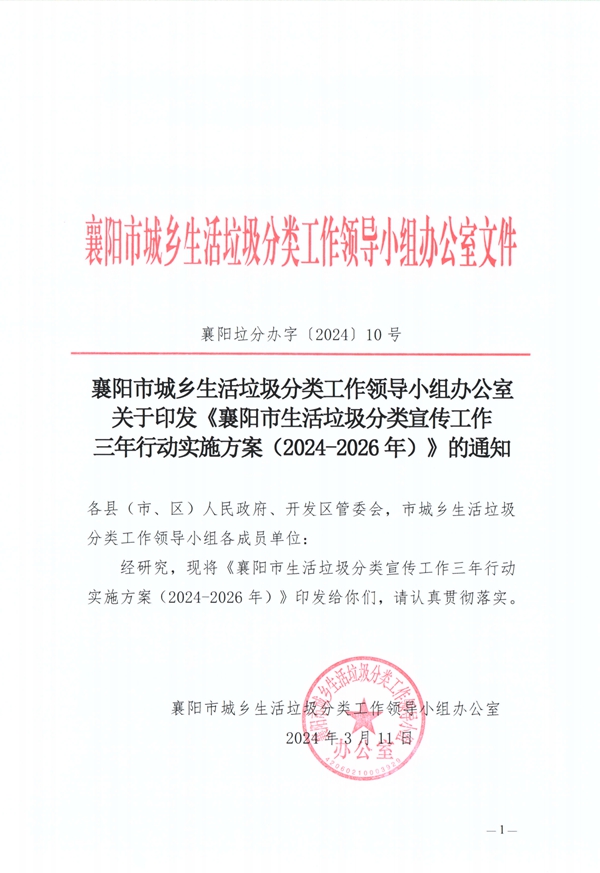 关于印发《襄阳市生活垃圾分类宣传工作三年行动实施方案(2024-2026年)》的通知