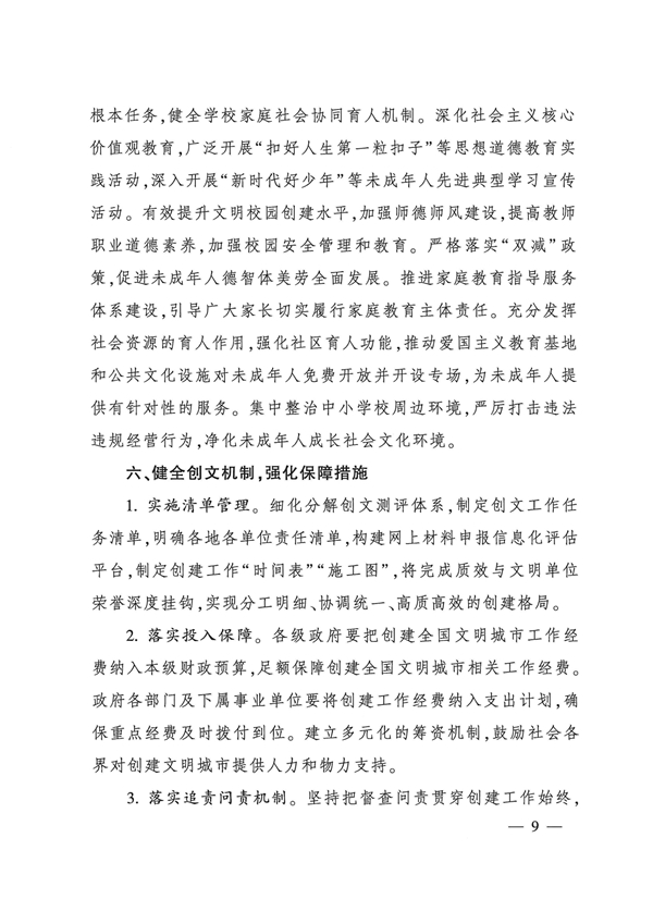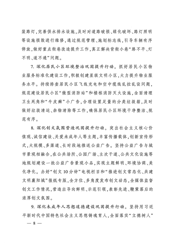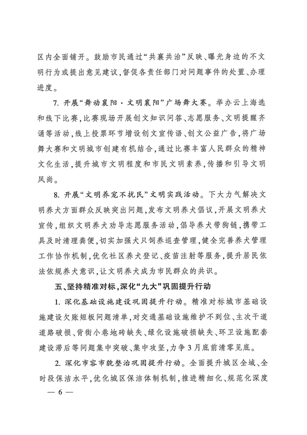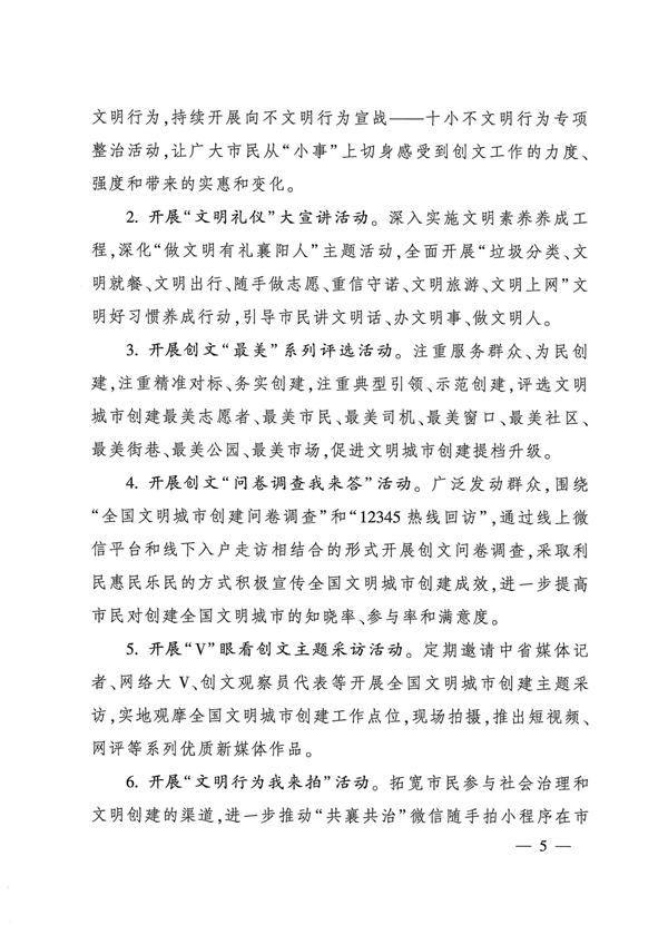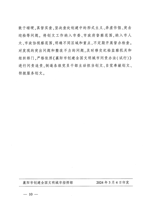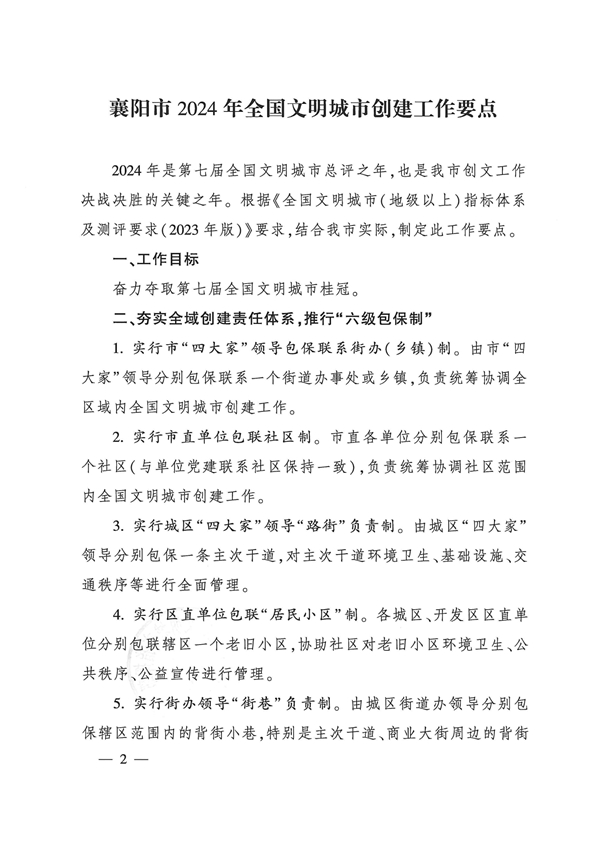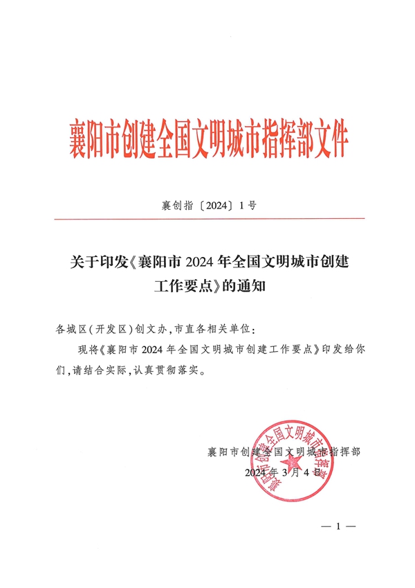 关于印发《襄阳市2024年全国文明城市创建工作要点》的通知