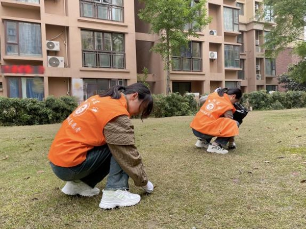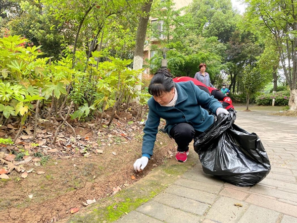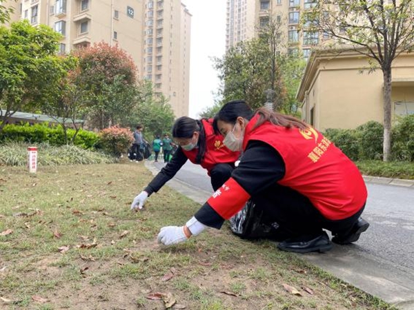 社区、物业工作人员与业主们一起,弯腰俯身,深入绿化带、灌木丛。用火眼金睛寻找不易发现的烟头、塑料片等白色垃圾,将其一一拾捡清理干净。