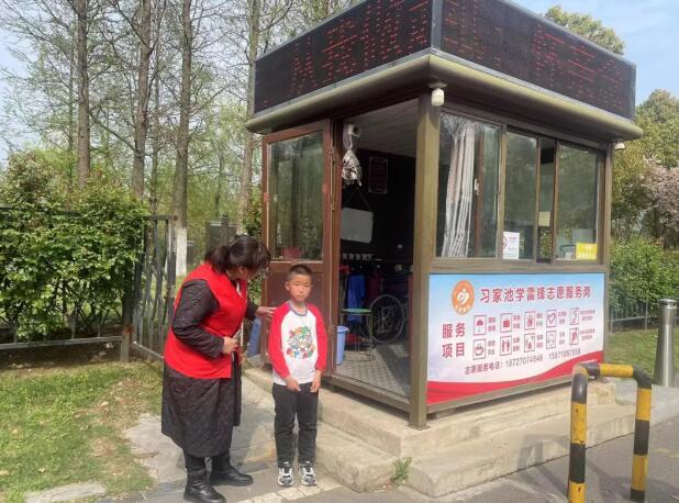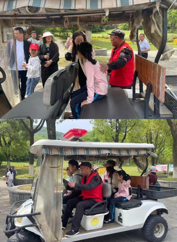 他是习家池志愿者冷关庆,4月的一天中午,刚刚端上午饭的他听到工作群里说有一名小女孩因低血糖瘫倒在园区竹门位置,于是二话不说放下碗筷开上巡逻车以最快的速度赶到了事发点,轻轻扶起孩子,招呼家长赶紧上车,然后又以最快的速度将他们安全送到园区门口去就医。