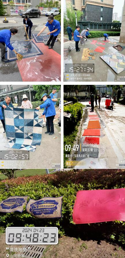 不一会儿,大大小小、颜色形状风格各异的地毯地垫都被清洗干净,晾晒起来。业主们纷纷给山河锦秀物业点赞,表示这样的活动很便利,很贴心,很受业主们欢迎。