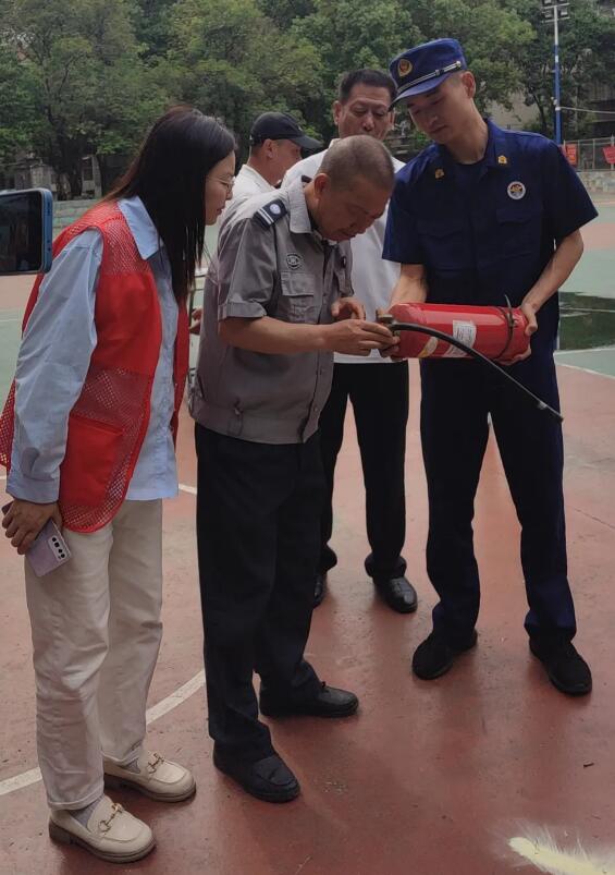 本次开展演练活动分为消防宣传、火情模拟、灭火器使用、火中自救、火灾逃生等环节。