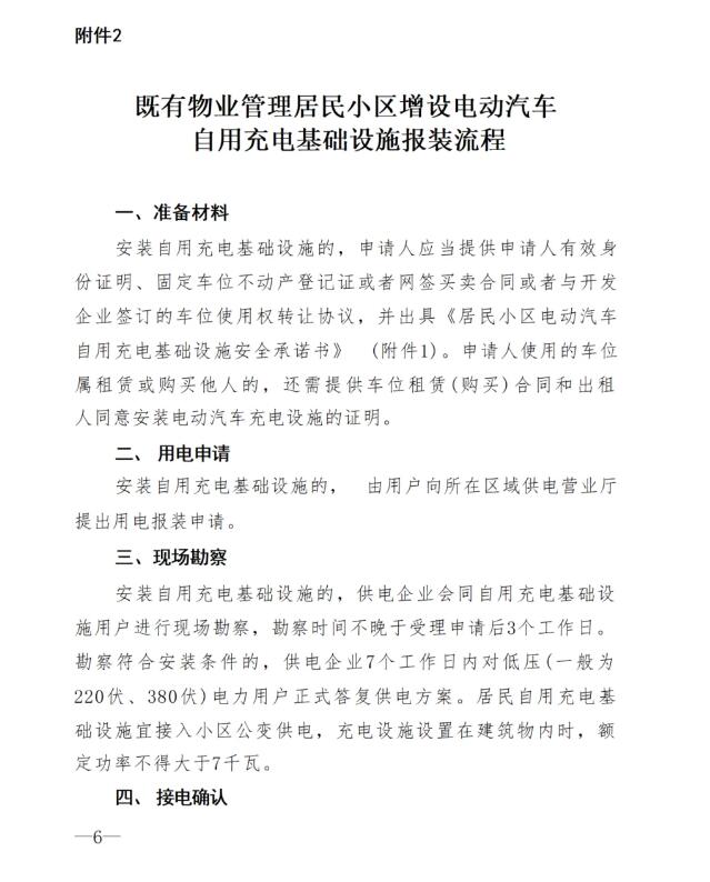 安装自用充电基础设施的,由申请人向所在区域供电营业厅提出用电报装申请。具体报装流程详见附件2.