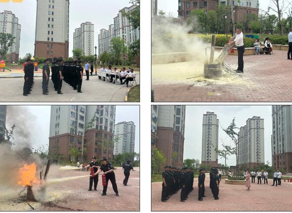 立正稍息、停止间转体动作,昂首挺胸的他们,两眼目视前方,两臂自然下垂并紧贴裤缝线,实操场上辉映着他们坚毅的脸庞和挺拔的身姿。为了提高消防意识,特别增加消防演练环节,技能提升才能提高救援效率,为业主提供百分百的满意服务,注重消防意识,提高消防能力,没有理由!不找借口!全力以赴!做到更好!
