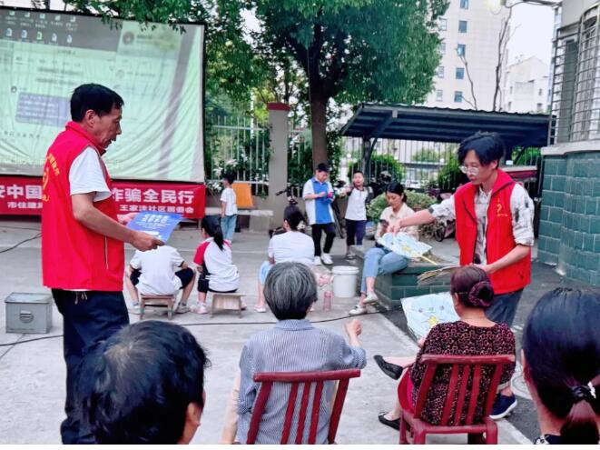 随着信息技术的飞速发展,电信网络诈骗手段层出不穷,给人民群众的财产安全带来了严重威胁。为了有效应对这一挑战,提升公租房小区居民的防范电信网络诈骗的意识和能力,5月27日晚,襄阳沁德物业管理服务有限公司与王家洼社区联合开展“反诈公益电影放映进小区”志愿服务活动,通过多种形式和渠道,将反诈知识传递给广大居民。