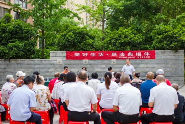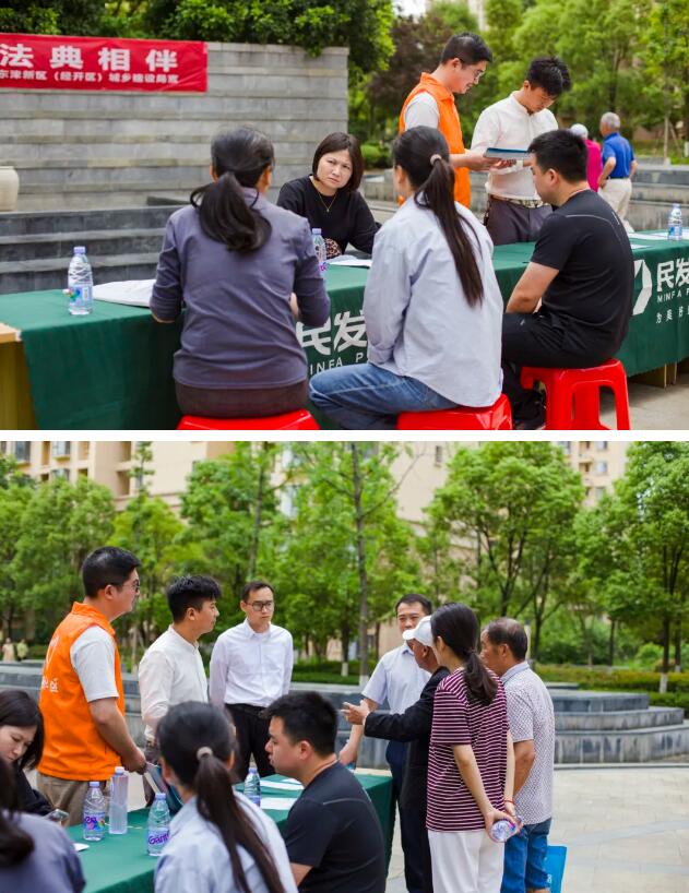 2024年5月是第四个“民法典宣传月”。5月30日上午9点,东津新区城乡建设局联合金源社区、民发物业在东津世纪城12区花漫里举行了“美好生活·民法典相伴”——民法典进小区宣教活动,并在现场为业主免费提供法律咨询服务。