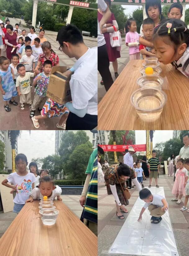 欣欣家园小区吹乒乓球的活动吸引很多孩子跃跃欲试,活动正式开始前,工作人员首先介绍了活动要领并做了示范,乒乓球要从第一个碗一直吹到最后一个碗才算完成。游戏刚开始时,只见孩子们围成一圈,在大家的加油鼓劲下,个个撅起嘴巴用力吹,用最大力气将球吹到桌子上,引得观众哈哈大笑。每个孩子胜利的喜悦溢于言表。