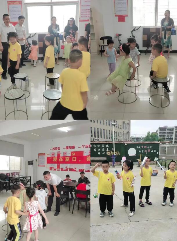 铁四院和谐家园小区孩子们抢凳子游戏将活动推向了高潮,它是一种有趣而激烈的游戏,锻炼了孩子们的反应及注意倾听能力,孩子们围着小椅子站成一个圆圈,跟随工作人员指令顺时针跑,听到音乐声停止必须到离自己最近的小凳子上坐下,比一比谁的反应快,每一次游戏结束工作人员都会拿掉椅子,没有抢到椅子的小朋友就会被淘汰,到旁边休息。整个游戏活动在孩子们积极投入、兴趣高涨、家长们欢呼鼓掌中进行!