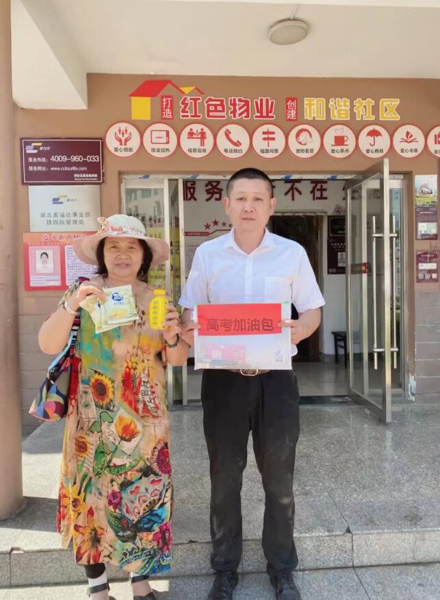 临近高考,铁四院和谐家园物业服务中心提前为考生“逢考必过”文具大礼包、“高考必胜”能量包,考虑到考生仍在紧张复习中,为了不打扰考生,加油礼包由家长们代为接收。“我替孩子谢谢你们送来的加油包和祝福,真的有心了!”收到礼包的张先生激动地说道,在送祝福的过程中,业主们深深感受到了来自物业的关心与支持!