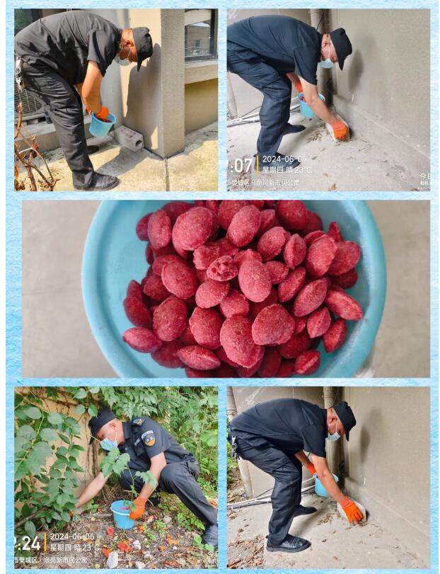 为防止小区鼠患滋生,给居民的生活带来困扰。物业工作人员重点对园区各个角落及鼠类活动频繁的鼠饵站进行投放,确保灭鼠不留后患。同时,工作人员提醒业主看护好小孩,管理好宠物,以防误食中毒,在确保安全的情况下,使鼠药投放效果达到最大化。