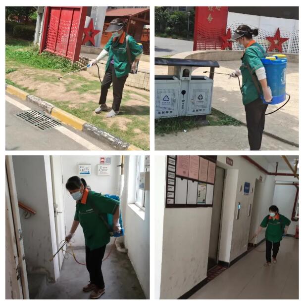 夏季是蚊虫活跃的初期,为进一步控制小区蚊虫孽生,采取人防和药防、环境治理相结合的方法。环境绿化部工作人员定期对园区垃圾桶周围、一层大厅、容易滋生蚊蝇的排水沟等公共区域进行药物消杀,以及日常忽视的卫生死角进行清理;对小区的生活垃圾及时进行清运,同时对园区垃圾桶进行了全面清洗,减少蟑螂蚊蝇滋生地和栖息场所。
