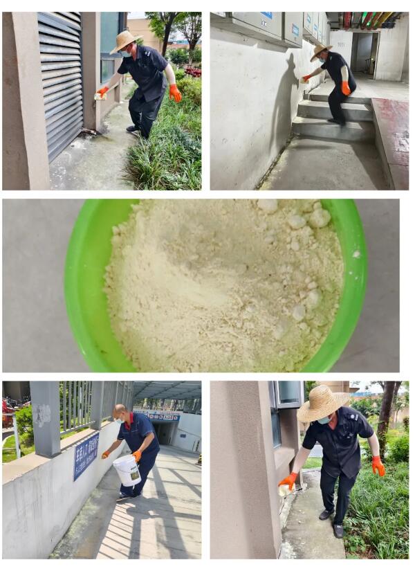 随着气温逐渐升高,蛇类爬行动物逐渐开始频繁活动。为了保障小区居民的生活安全与舒适,给大家营造一个安心的居住环境,物业工作人员在园区围墙周边、楼宇后面、地下室以及其它阴暗潮湿区域放置驱蛇粉,避免蛇类带来的潜在危险。