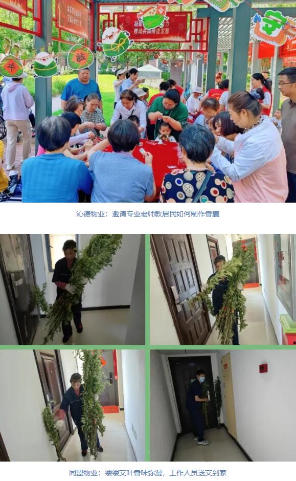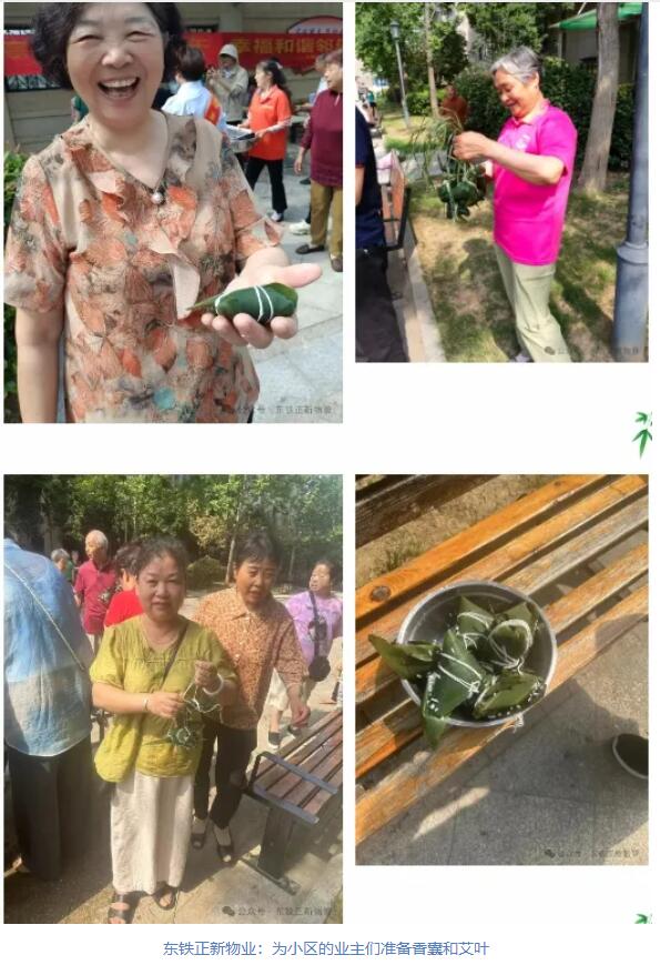 市物业管理有限公司:关注“一老一小”群体需求,组织小区老年住户一起包粽子、制作艾草养生锤