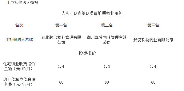 2.拟确定中标人:湖北融欣物业管理有限公司