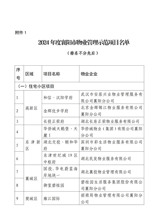 1.2024年度襄阳市物业管理示范项目名单