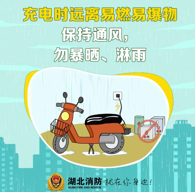 2024年7月27日05时26分,位于洪山区张家湾街道万科城市之光小区西门外南市道路电动自行车棚(车辆品牌:雅迪;生产企业:雅迪科技有限公司;电池类型:铅酸电池;)充电时起火,起火原因系电池电气线路故障。