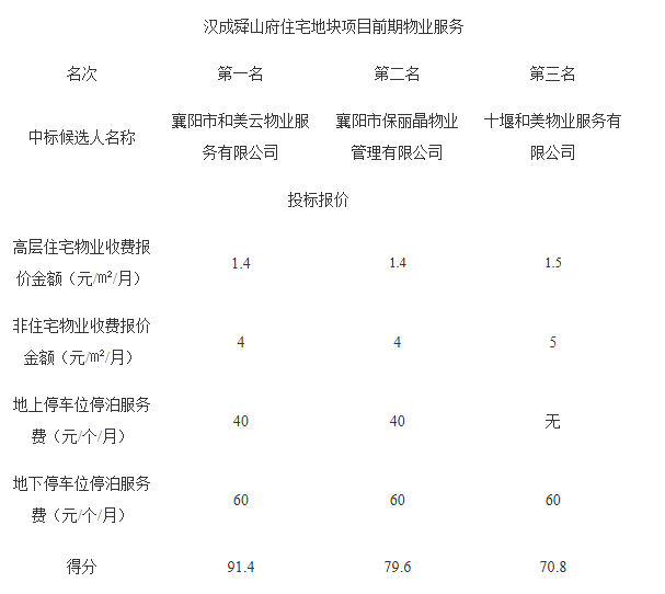 2. 拟确定中标人:襄阳市和美云物业服务有限公司