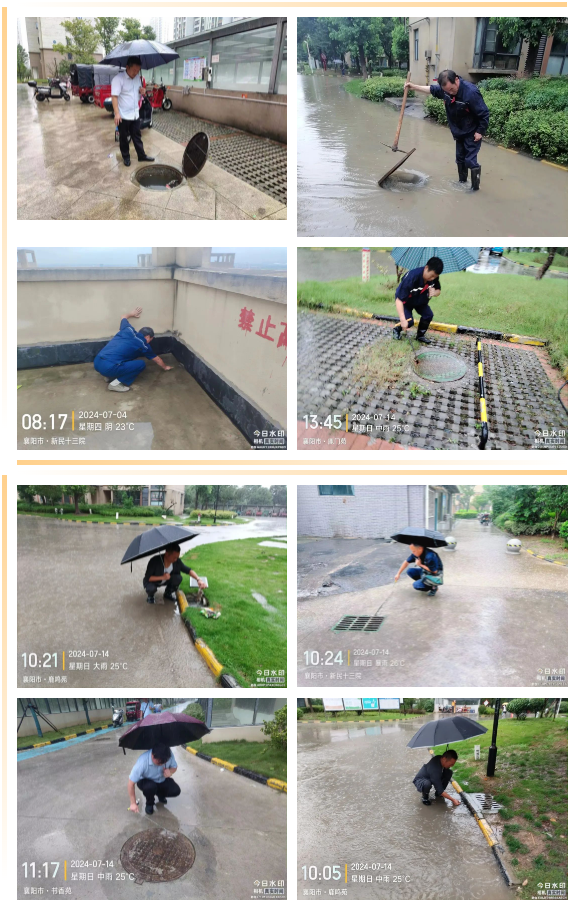特大暴雨虽已过去,襄阳津韵物业人仍将坚守一线,为您和家人的安全筑起一道坚不可摧的防线。在风雨无阻的坚守中,物业工作人员矢志不渝,持续以实际行动,坚决守护业主的安宁家园。