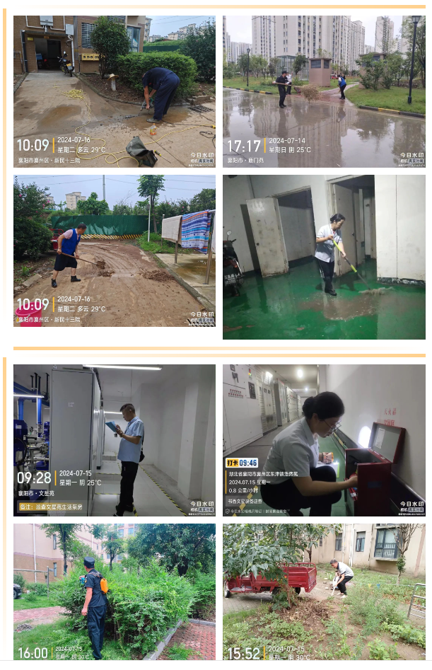 暴雨过后,及时检查小区内公共设施设备,清理淤泥杂物、加固小区内的绿化树木、检修水电气、各项隐患仔细排查等,确保防汛工作不留盲区、不留隐患,全力保障业主正常安居生活。