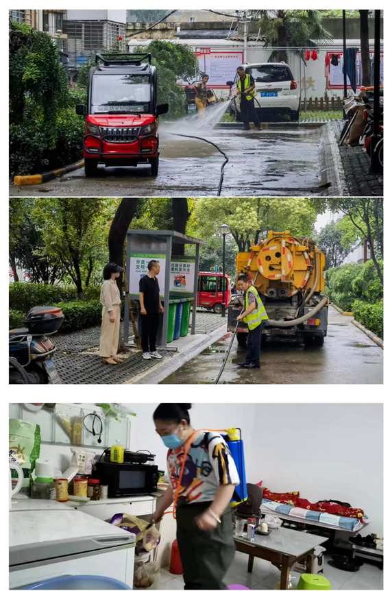 组织专业人士对公房小区进行消杀,降低媒介疾病传播风险,对垃圾桶、楼道地面、墙面等重点部位进行“无死角、无盲区、全覆盖”的防疫消杀工作,确保不留死角,有效遏制了细菌和蚊虫的滋生;及时开展汛后清淤工作,对淤泥、积水、垃圾进行彻底清理,并用专业清洗车对道路进行二次清洗,及时恢复了小区的道路及排水畅通;全面排查小区汛后安全隐患点,维修保养楼顶防水、漏水墙面、故障水泵等共用部位及设备设施,保障小区居民生活秩序“一键恢复”。