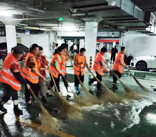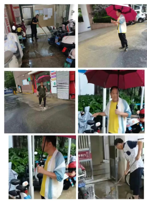 当强降雨持续不断、红色预警发布时,春润物业人迅速行动起来。他们穿上雨衣,手持工具,在倾泻的大雨中穿梭于园区中,全天候巡查园区、天台、设备设施房、地下车库等公共区域,通过铺设防汛板、放置防洪沙袋等措施,确保了小区的排水系统畅通。物业团队积极发布降雨预警公告,提醒业主关闭门窗、清扫积水、处理排污管堵塞等,全力保障小区的安全。春润物业团队用实际行动证明了对小区安全和居民的关心与守护,让业主们在风雨中感受到了家的温暖和安宁。