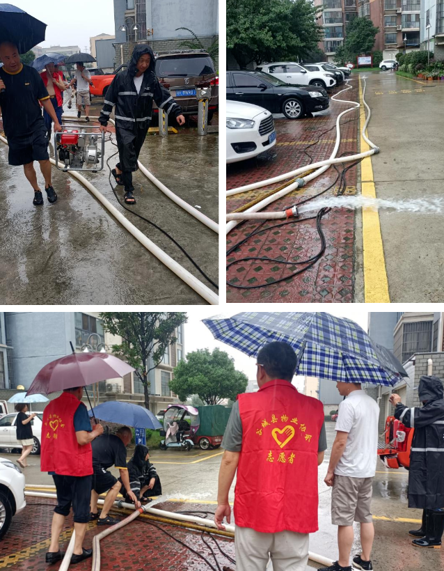情急之下,县住建局物业协会余会长当机立断协调应急救援局支持,安排专人增设一台大功率发动机及抽水泵冒雨及时运到、迅速安装。