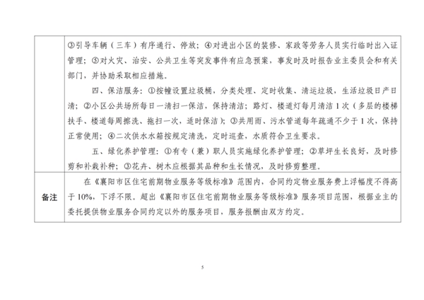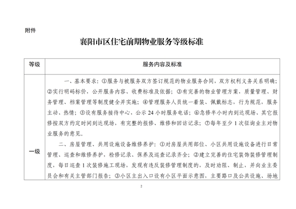 关于公布《襄阳市区住宅前期物业服务等级标准》的通知
