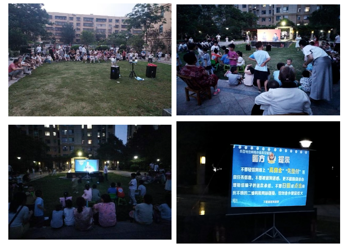 当宣传片开场,光影在幕布上流转,诈骗与消防相关的画面依次铺展。一个个真实的诈骗案例、一次次惊心的诈骗手段揭秘,紧紧抓住了所有人的目光;同时,火灾的危害、起火的诱因、正确逃生方法等消防知识,也随着画面传递开来。孩子们不再喧闹,小脑袋随着画面转来转去;大人们神情专注,偶尔轻声交流,“原来现在诈骗这么花样百出”“这消防隐患咱家里可得注意” 。物业人员和社区工作者守在一旁,看到有人不太明白的地方,就轻声讲解,那专注的模样,和这夏夜的温柔融在一起。