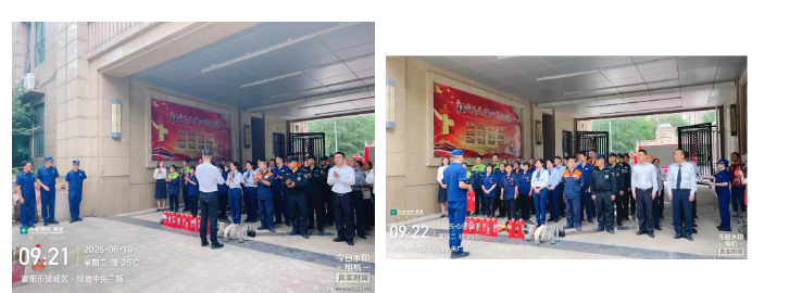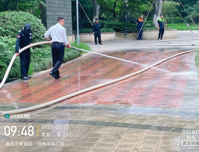 2025年6月10日早上9点10分,襄阳市樊城区绿地中央广场小区内警铃声骤响,一场独具特色的消防演练正式开启。此次演练由长城物业主办,在区消防救援大队、云兴社区大力支持下,联合消防救援站、业主党员代表共同开展。参与演练的人员有长城物业绿地中央广场管理处、绿地香俪公馆管理处、绿地香庭公馆管理处的客服管家、秩序维护人员、保洁人员等,共计63名物业工作人员。