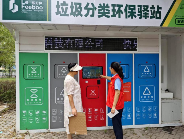 在垃圾分类环保驿站,“红管家”结合实物展示柜向往来承租户讲解了他们手中垃圾的分类,针对易混淆的化妆品瓶、一次性餐盒等12类物品进行重点演示,帮助他们准确识别、精准投放,逐步养成良好的分类习惯。并现场宣传“垃圾并不都是‘垃圾’,很多‘垃圾’都可以通过分类投放、分类收集把有用的物资分离出来重新回收利用,变废为宝。”