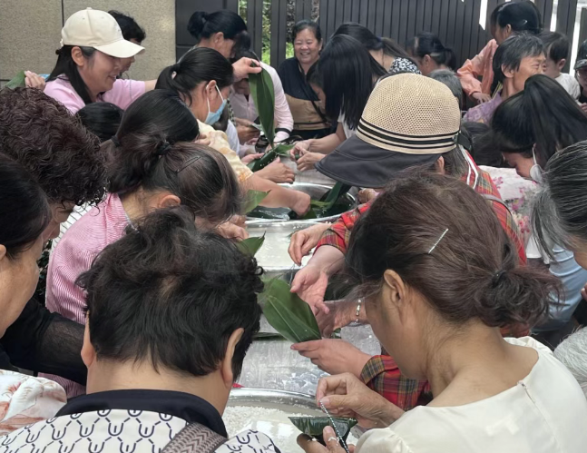 在包粽子的过程中,大家一边忙碌着手中的活儿,一边分享着生活中的点点滴滴。邻里之间的距离在这一刻被无限拉近,原本不太熟悉的邻居们,通过这次活动,有了更多的交流和互动。大家相互帮助、相互鼓励,现场欢声笑语此起彼伏,其乐融融,仿佛一个温馨的大家庭。