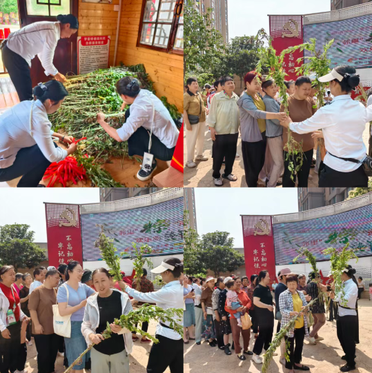 端午系彩绳,岁岁祈安康。活动现场,工作人员为小朋友佩戴象征吉祥如意的五彩绳,传递驱邪纳福的美好寓意,并发放新鲜艾叶,送上节日的美好祝福,为居民生活系上平安顺遂的期许。